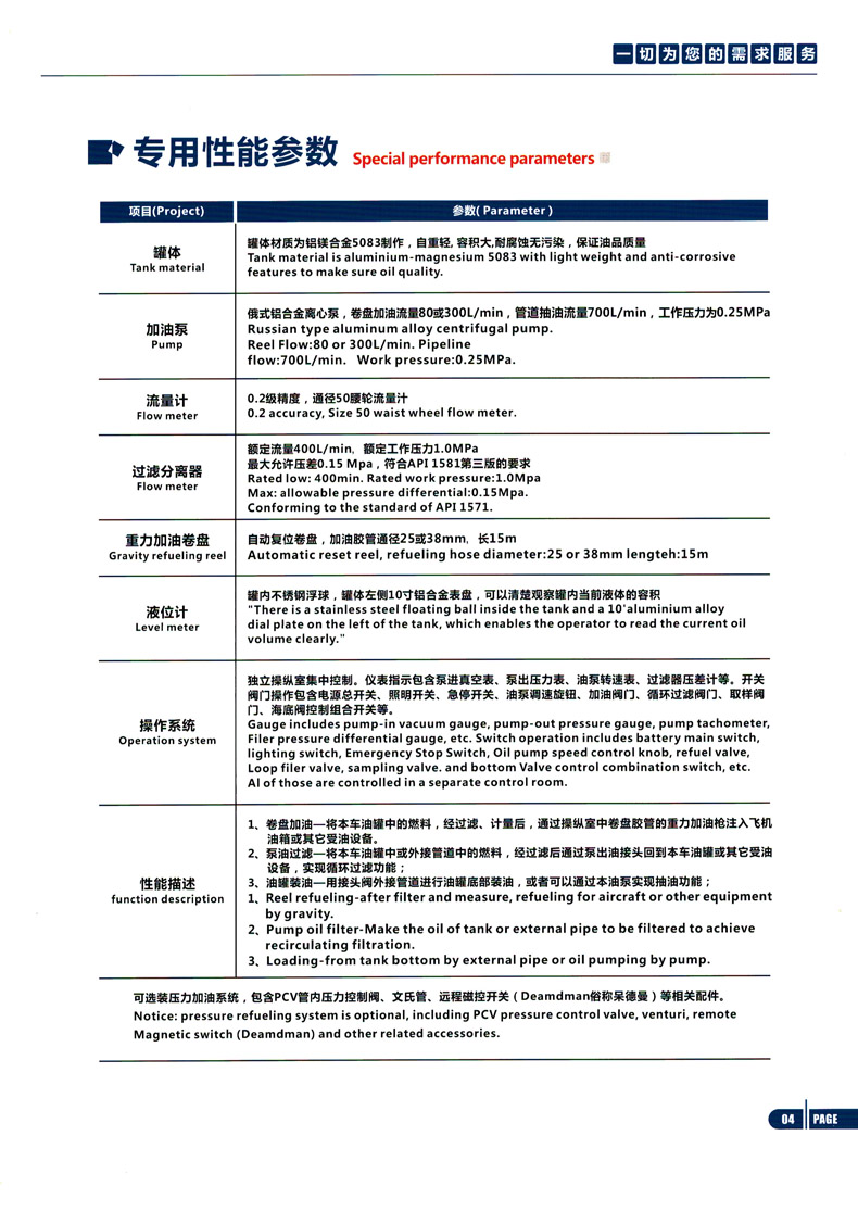 解放小型飛機加油車 產(chǎn)品主要技術(shù)資料
