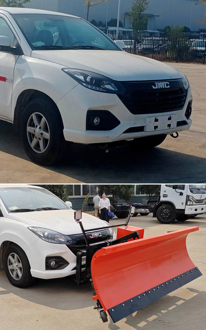 該車(chē)裝有前安裝架,裝備撒布機(jī),選裝推雪鏟和除雪滾刷.