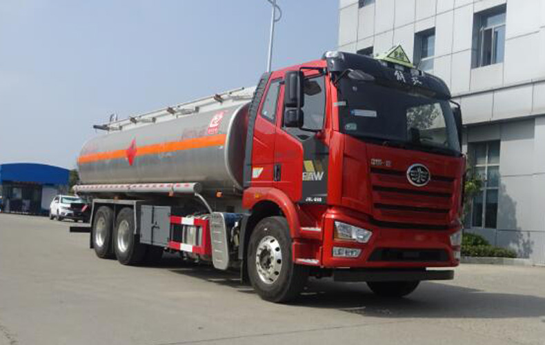 罐體總?cè)萘?21.5立方米,罐體有效容積:20.5立方米,危險(xiǎn)貨物運(yùn)輸車輛的類型為FL型,介質(zhì)zui大密度735千克/立方米;罐體尺寸(長(zhǎng)×長(zhǎng)軸×短軸)(mm)為:7300×2300×1650,僅采用4800+1350mm軸距;側(cè)、后防護(hù)裝置材料材質(zhì):Q235B,側(cè)、后防護(hù)均采用螺栓連接,后防護(hù)裝置斷面尺寸為(mm):80×150,后部防護(hù)離地高度:400mm;選裝駕駛室,選裝管箱樣式,選裝尾部工具箱樣式;安裝具有衛(wèi)星定位功能的行駛記錄儀,排氣管前置,安裝前輪盤式制動(dòng)器和限速裝置,限速79km/h,僅采用底盤子午線輪胎;安裝EBS,EBS型號(hào):EBS3,EBS系統(tǒng)生產(chǎn)廠家:威伯科汽車控制系統(tǒng)(中國(guó))有限公司;發(fā)動(dòng)機(jī)型號(hào)及油耗值(L/100km)分別為:CA6DK1-32E6(37.47),CA6DK1-28E6(37.47),CA6DK1-32E61(37.47),CA6DK1-28E61(37.47).該車后軸采用空氣懸架;轉(zhuǎn)向輪安裝爆胎應(yīng)急防護(hù)裝置.該車型可選裝ETC車載裝置.