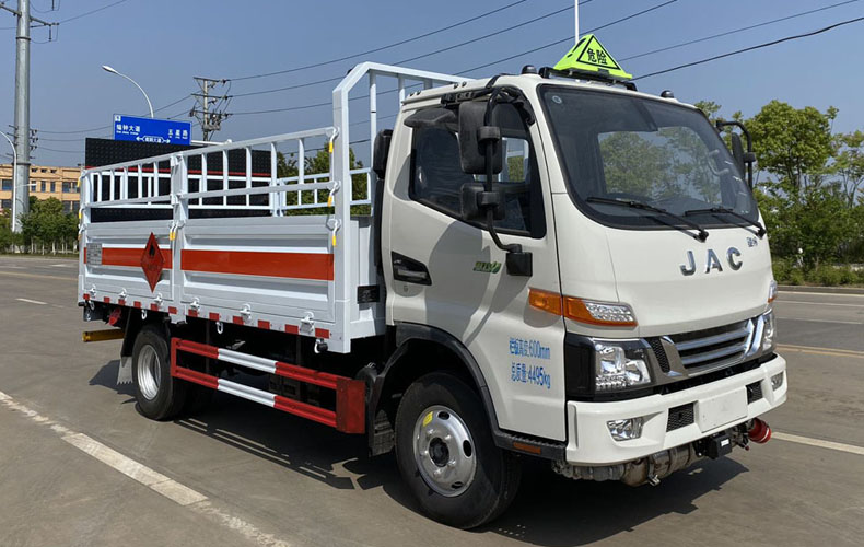 該車適用于運輸危險品。類項號:2.1,2.2。該車用于運輸具有獨立容器(瓶)包裝的物品。側,后防護材料均為Q235,螺栓連接,后防護截面尺寸φ100mm,下邊緣離地高450mm;選裝后部無尾板時,后防護材料為Q235,焊接,截面尺寸(mm):100×50,下邊緣離地高450mm。選裝欄板樣式。僅選用排氣管前置、限速裝置(限速80km/h)、前輪盤式制動及子午線輪胎的底盤;轉向輪裝備輪胎爆胎應急防護裝置。安裝帶有衛星定位功能的行駛記錄儀。ABS型號/廠家為:CM4XL-4S/4M /廣州瑞立科密汽車電子股份有限公司,VIE ABS-Ⅱ/浙江萬安科技股份有限公司。發動機/油耗值(L/100Km)對應關系為:WP2.3NQ130E61/10.83,HFC4DE3-2E5/9.91。尾板收起狀態水平長度為280mm,尾板質量為350kg。選裝ETC。整備質量含備胎,滅火器及隨車工具;貨廂重量為420kg,材質/厚度:底板, T700/1mm;墻板, Q235/1mm。隨底盤選裝氣瓶、尿素罐、電瓶安裝位置.隨底盤選裝駕駛室,鋁合金輪輞,選裝不同樣式的前面板字標,選裝后視鏡副鏡桿.