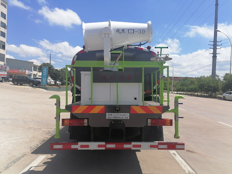 消防灑水車安裝消防車專用消防泵、消防炮、消防取力器。罐體后帶工作平臺(tái),平臺(tái)上安裝綠化灑水炮,灑水炮可全方位旋轉(zhuǎn),帶前沖后灑,帶側(cè)噴,可連續(xù)調(diào)成直流狀、霧狀、大雨、小雨、毛毛雨,帶安全護(hù)欄。罐體頂部安裝消防水炮。帶消防接口,可通過消防栓進(jìn)水,帶自流閥,消防綠化卷盤。