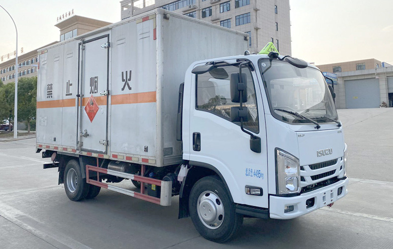 1、該車為危險品運輸車.運輸具有獨立容器(瓶)包裝的易燃液體物品.運送危險物品類項號:3類.廂體頂部封閉不可開啟.2、側、后防護材料均為Q235,螺栓連接,后防護截面尺寸(mm)100×50,下邊緣離地高460mm.選裝后部尾板時,后防護材料為Q235,螺栓連接,截面尺寸(mm)Φ100,下邊緣離地高430mm.尾板收起狀態水平長度為280mm,尾板質量為350kg.3、整備質量含備胎,滅火器及隨車工具;貨廂重量為1120kg;材質/厚度:復合板結構廂體:底板材質為Q235,厚度3mm,側板為外Q235+中間阻燃泡沫+內純鋁板,厚度42mm;瓦楞板結構廂體:底板材質為Q235,厚度3mm,側板為Q235,厚度1.5mm.4、僅選用排氣管前置、限速裝置(限速80km/h)、前輪盤式制動及子午線輪胎的底盤,轉向輪安裝輪胎爆胎應急防護裝置.安裝帶有衛星定位功能的行駛記錄儀.ABS系統型號/生產廠家:CM4XL-4S/4M/廣州瑞立科密汽車電子股份有限公司.發動機/油耗值(L/100km)對應關系為: JE493ZLQ6K/11.02.該車可選裝直接供電式ETC車載裝置.隨底盤選裝不帶后風窗玻璃,選裝不帶前霧燈,選裝前霧燈,選裝不帶車輪裝飾罩.選裝鋁合金輪輞.選裝廂體側面選裝開門型式及位置,選裝不帶側開門,選裝貨廂平面或瓦楞結構;廂體側面選裝開百葉窗,選裝后部樣式.選裝排半駕駛室.選裝后門雙拉桿.選裝制冷機組.隨底盤選裝儲氣筒,尿素罐,電瓶安裝位置.