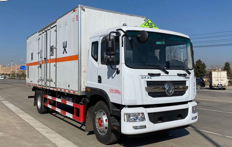 該車適用于運輸危險品。廂體頂部封閉不可開啟。運輸具有獨立容器(瓶)包裝的物品,危險貨物類項號:8。側,后防護材料均為Q235,側防護螺栓連接;后防護焊接,截面尺寸(mm)60×120,下邊緣離地高480mm。隨底盤選裝同系列的高頂駕駛室,選裝氣喇叭,遮陽罩,綠色濾光帶,踏步。僅選用排氣管前置、限速裝置(限速80km/h)、前輪盤式制動及子午線輪胎的底盤,后軸采用空氣懸架,轉向輪安裝輪胎爆胎應急防護裝置,安裝帶有衛星定位功能的行駛記錄儀。EBS系統型號/生產廠家:EBS/ESC-d/襄陽東風隆誠機械有限責任公司。發動機與油耗值(L/100Km)對應關系為:B6.2NS6B230/26.7,D4.5NS6B220/26.6,YCS04200-68/26.4,CY4SK761/26.8。選裝ETC。選裝尾板,尾板收起狀態水平長度為290mm,尾板質量為550kg。選裝側門型式及位置,選裝側門數量,選裝不開側門,廂體側面板選裝開百葉窗,選裝瓦楞板結構。選裝制冷機組,選裝燃油箱,電瓶,尿素罐,儲氣筒,后處理左右安裝位置。隨底盤選裝駕駛室,選裝前組合燈具,前面罩和后視鏡.