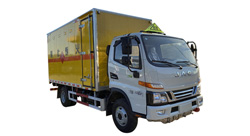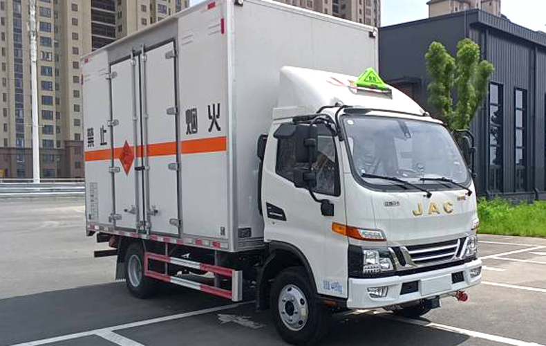 1、該車適用于運輸危險品,運輸具有獨立容器(瓶)包裝的物品,危險貨物運輸車輛類型:EX/Ⅲ,危險貨物類項號:1.1B,1.1C,1.1D,1.1G,1.2C,1.2D,1.2G,1.3C,1.3G,1.4C,1.4D,1.4G.廂體頂部封閉,不可開啟.2、側、后防護材料均為Q235,側防護螺栓連接;后防護焊接,后防護截面尺寸(mm)50×100,下邊緣離地高450mm.3、整備質量包括備胎,滅火器,停車楔,隨車工具.貨廂重量分為1190kg,1035kg,貨廂材質/厚度:底板,碳鋼/3mm;側板,內板鋁板/1mm,外板碳鋼/1.2mm,夾層聚氨酯阻燃泡沫/40mm.4、僅選用排氣管前置、限速裝置(限速80km/h)、前輪盤式制動及子午線輪胎的底盤,轉向輪安裝輪胎爆胎應急防護裝置.安裝帶有衛星定位功能的行駛記錄儀.ABS型號/廠家為:CM4XL-4S/4M /廣州瑞立科密汽車電子股份有限公司,ABS型號/廠家:VIE ABS-Ⅱ/浙江萬安科技股份有限公司.發動機/油耗值(L/100km)對應關系為: WP2.3NQ130E61/10.83,HFC4DE3-2E5/9.91.該車可選裝直接供電式ETC車載裝置.隨底盤選裝駕駛室,鋁合金輪輞,選裝不同樣式的前面板字標,選裝儲氣筒、電瓶、尿素罐、后處理位置,選裝后視鏡副鏡桿,廂體側面選裝開門型式及位置,選裝不帶側開門.