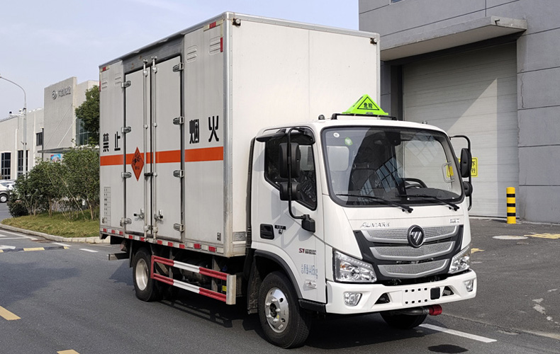 該車適用于運輸危險品.廂體頂部封閉,不可開啟.該車用于運輸具有獨立容器(瓶)包裝的物品,危險貨物運輸車輛類型EX/II.類項號:1.1B, 1.1C, 1.1D, 1.1G, 1.2C, 1.2D, 1.2G,1.3C,1.3G,1.4C,1.4D,1.4G.側后防護材料均為Q235,螺栓連接,后防護截面尺寸(mm)100×50,下邊緣離地高410mm.僅選用排氣管前置、限速裝置(限速80km/h)、前輪盤式制動及子午線輪胎的底盤;轉向輪裝備輪胎爆胎應急防護裝置.安裝帶有衛星定位功能的行駛記錄儀.ABS型號/生產廠家:ABS-E/威伯科汽車控制系統(中國)有限公司,ABS-VI·E/廣州瑞立科密汽車電子股份有限公司,YF8/武漢元豐汽車電控系統有限公司.發動機/油耗值(L/100Km)對應關系為:D25TCIF1/11.16,F2.5NS6B131/11.27.選裝直接供電ETC車載裝置,僅選用3360mm軸距.整備質量含備胎,滅火器及隨車工具;貨廂重量為(kg):1340,1260;材質/厚度:底板材質為Q235,厚度4mm,側板為外Q235+中間阻燃泡沫+內純鋁板,厚度42mm.整備質量/貨箱重量對應關系為(kg):3635/1340,3555/1260.選裝后門雙拉桿.廂體側面選裝不同型式側開門及開門位置或不帶側門,選裝開百葉窗,選裝后門結構.