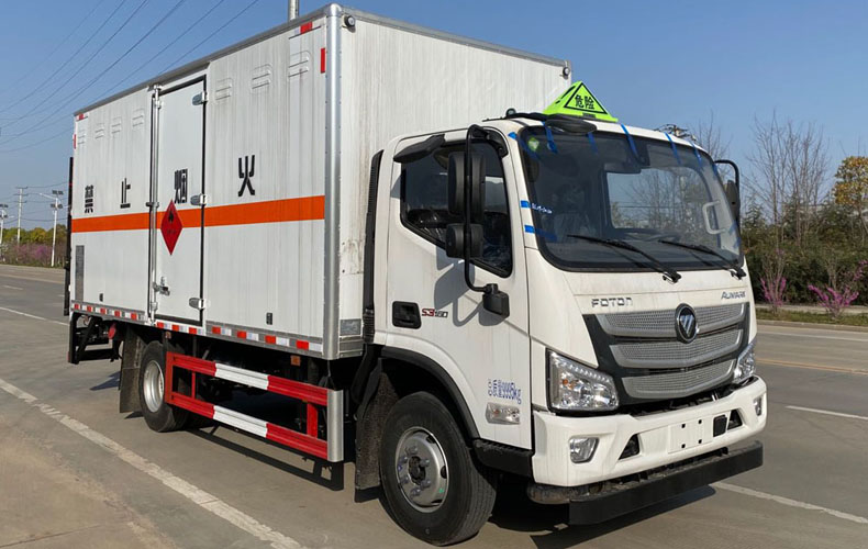 1、該車適用于運輸危險品,運輸具有獨立容器(瓶)包裝的物品,運送危險物品類項號:2.1,2.2.廂體頂部封閉不可開啟.2、側后防護材料均為Q235,側防護螺栓連接,后防護焊接,后防護截面尺寸(mm)120×50,下邊緣離地高460mm。選裝后部無尾板,選裝后部無尾板時,后防材料為Q235,螺栓連接,截面尺寸(mm)120×60,下邊緣離地高460mm。廂體側面選裝開門型式及位置,選裝后門雙拉桿,選裝不帶側開門,選裝瓦楞板結構,廂體側面板選裝開百葉窗.3、該車僅采用3800mm軸距改裝.隨底盤選裝排半駕駛室.僅選用排氣管前置、限速裝置(限速80km/h)、前輪盤式制動及子午線輪胎的底盤;轉向輪裝備輪胎爆胎應急防護裝置。安裝帶衛(wèi)星定位功能的行駛記錄儀。ABS系統(tǒng)控制器型號/生產企業(yè):ABS-E/威伯科汽車控制系統(tǒng)(中國)有限公司。發(fā)動機/油耗值(L/100km)對應關系為:F3.8NS6B156/17.17。尾板收起狀態(tài)水平長度為300mm,尾板質量為450kg。選裝直接供電式ETC車載裝置。F3.8NS6B156發(fā)動機最大凈功率為112Kw.