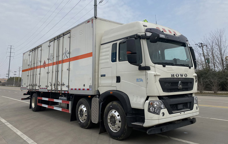 1、該車為危險品運輸車,廂體頂部封閉,不可開啟,危險貨物運輸車輛類型:EX/Ⅲ.該車用于運輸具有獨立容器(瓶)包裝的爆炸品。類項號:1.1B,1.1C,1.1D,1.1G,1.2C,1.2D,1.2G,1.3C,1.3G,1.4C,1.4D,1.4G。2、側防護及后防護材料為Q235,側防護螺栓連接,后防護焊接連接,截面尺寸120×60mm,下邊緣離地高485mm.3、整車長/軸距/后懸對應關系為(mm): 11995/1800+5600/3165,10350/1800+4600/2520.僅采用前輪盤式制動器,前置排氣管,子午線輪胎,限速裝置的底盤,限速80km/h;轉向輪安裝爆胎應急防護裝置;后軸采用空氣懸架;該車型可選裝ETC車載裝置.發動機/油耗值(L/100km)對應關系為: MC07.25-60/29.42, MC07.27-60/29.42, MC07.31-60/29.42,MC07H.33-61/32.91,MC07H.35-61/32.91,MC07H.31-61/32.91.該車安裝具有衛星定位功能的行駛記錄儀;EBS型號:EBS3;EBS系統生產企業:威伯科(上海)管理有限公司.廂體側面選裝開門型式及位置,選裝不帶側開門,選裝后門合頁,選裝貨廂平面或瓦楞結構;廂體側面板選裝開百葉窗,選裝后部樣式;隨底盤選裝駕駛室.選裝尿素罐、后處理器安裝位置,選裝后處理器樣式.