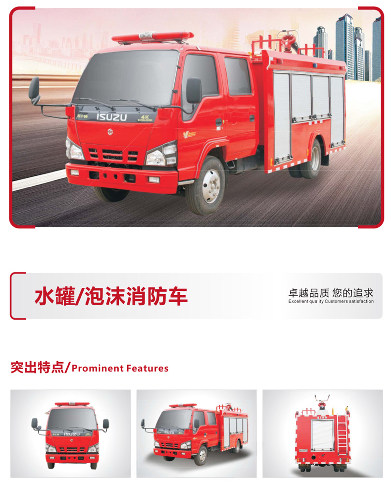 水罐消防車/泡沫消防車/化學救援消防車/搶險救援消防車/干粉水(泡沫)消防車功能說明: