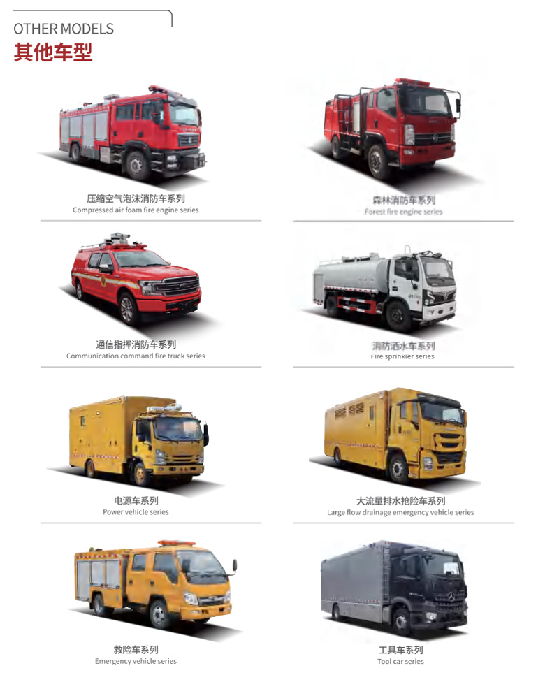 水罐消防車/泡沫消防車/化學(xué)救援消防車/搶險(xiǎn)救援消防車/干粉水(泡沫)消防車功能說明: